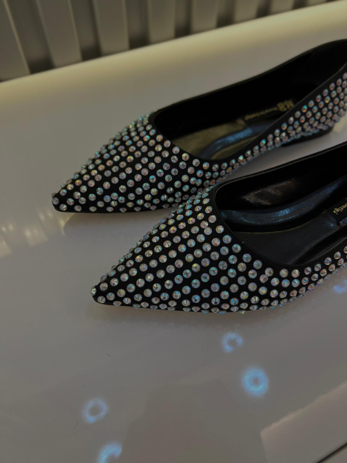 DAVİN SİYAH SATEN TAŞ DETAY KADIN BABET