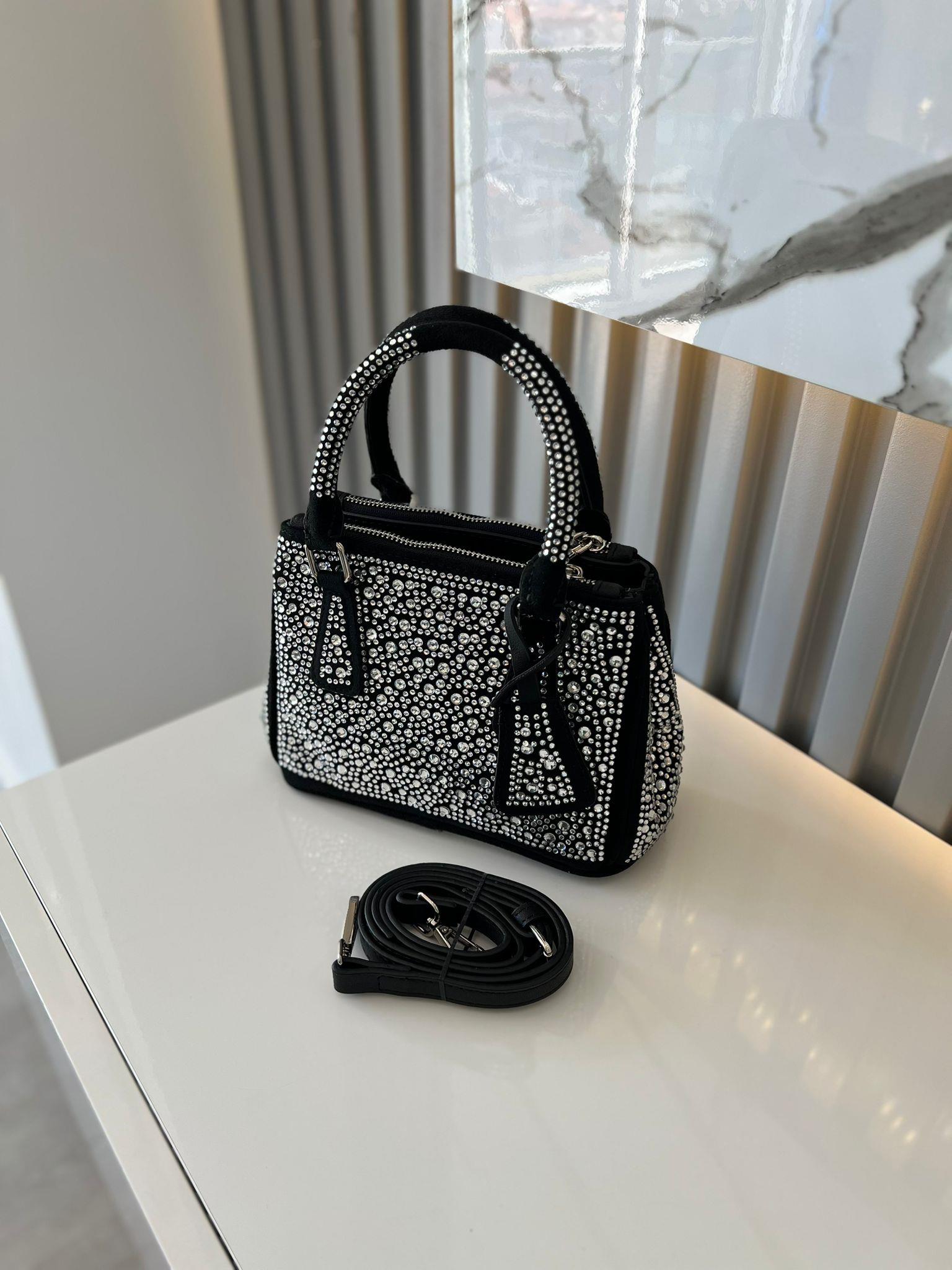 DİAMOND TAŞLİ ÇANTA SİYAH TAŞ BEYAZ