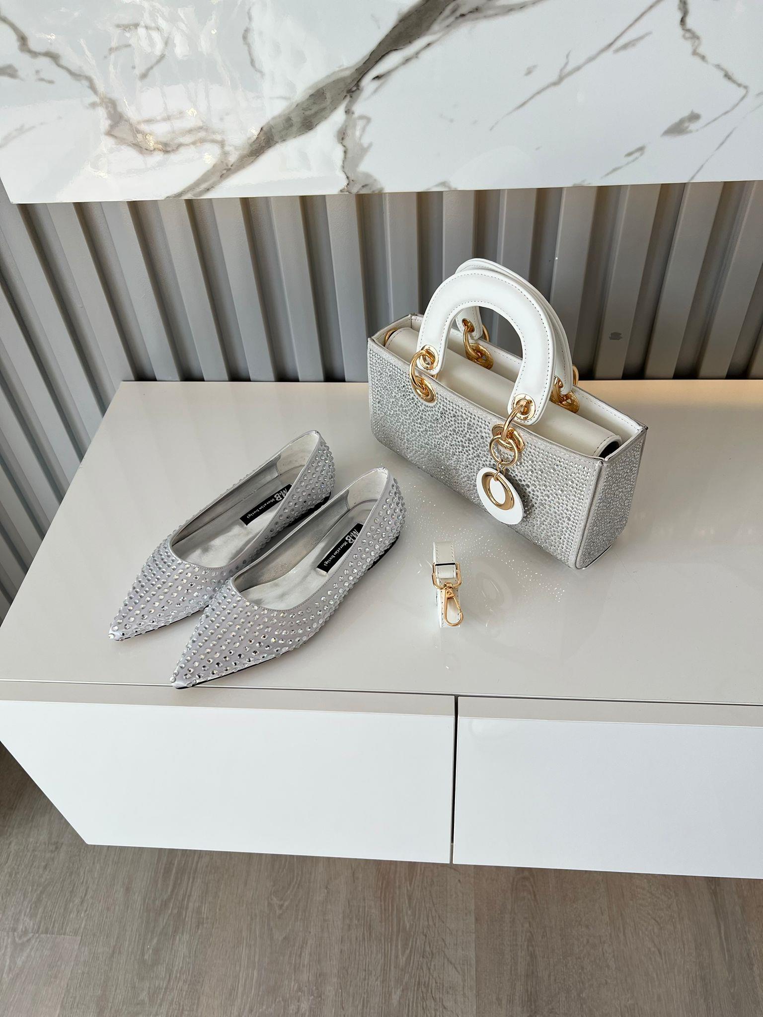 FRANKY GÜMÜŞ SATEN TAŞ DETAY KOMBİN KADIN BABET ve
