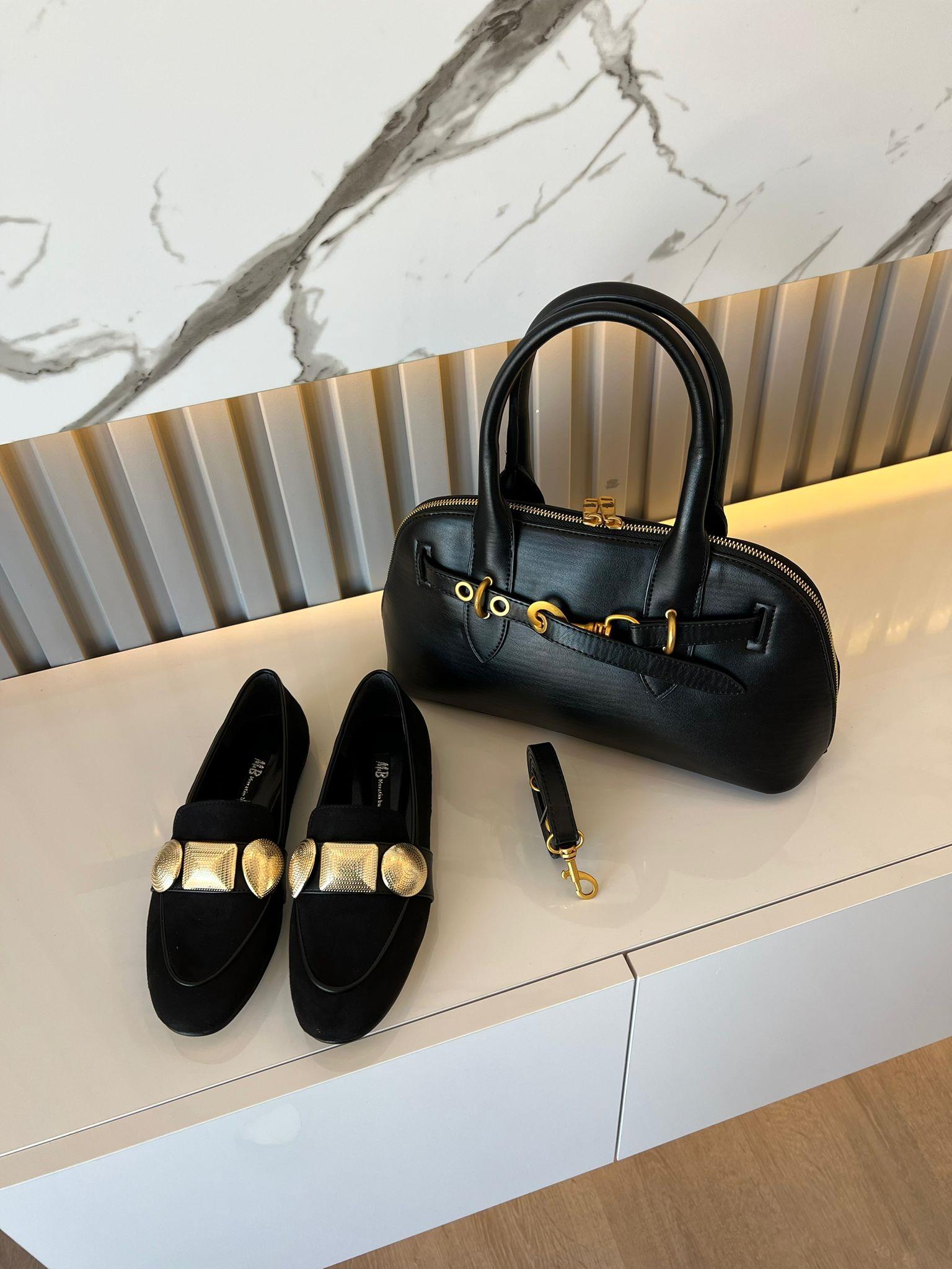 kombin Loafer siyah  süet görünümlü ayakkabı.ve mat  çanta  (7958)
