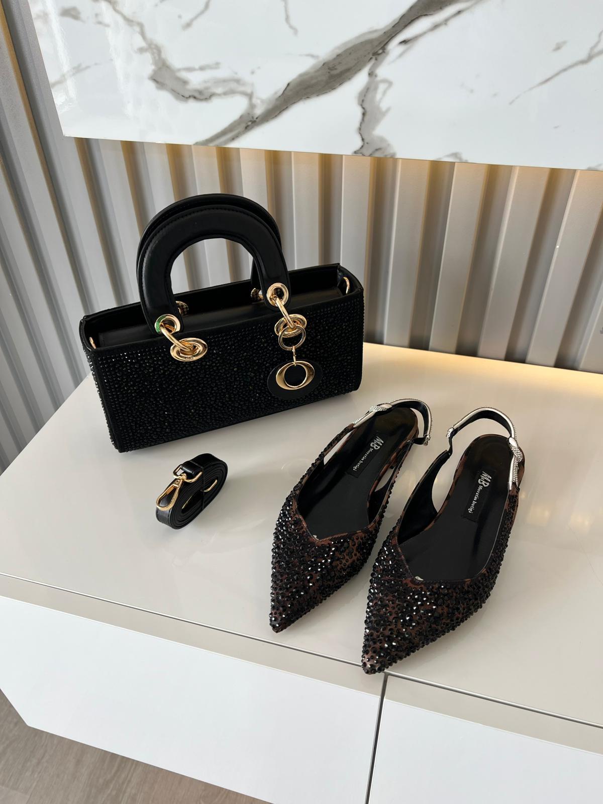 LEOPAR SATEN TAŞ DETAY KADIN BABET VE KOMBİN ÇANTA