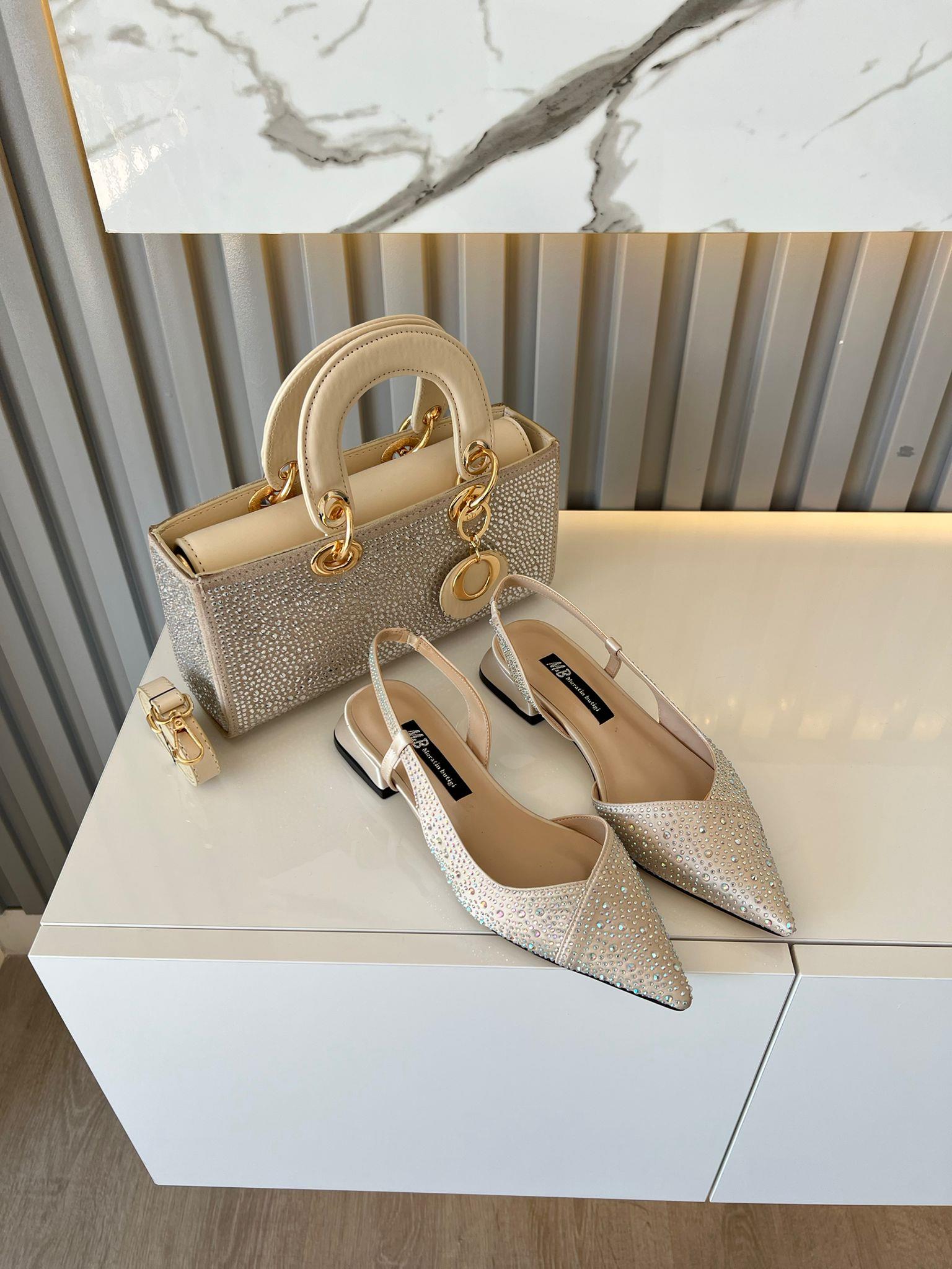 LİMAR TAŞ DETAYLI BEJ RENK KADIN BABET VE KOMBIN ÇANTA
