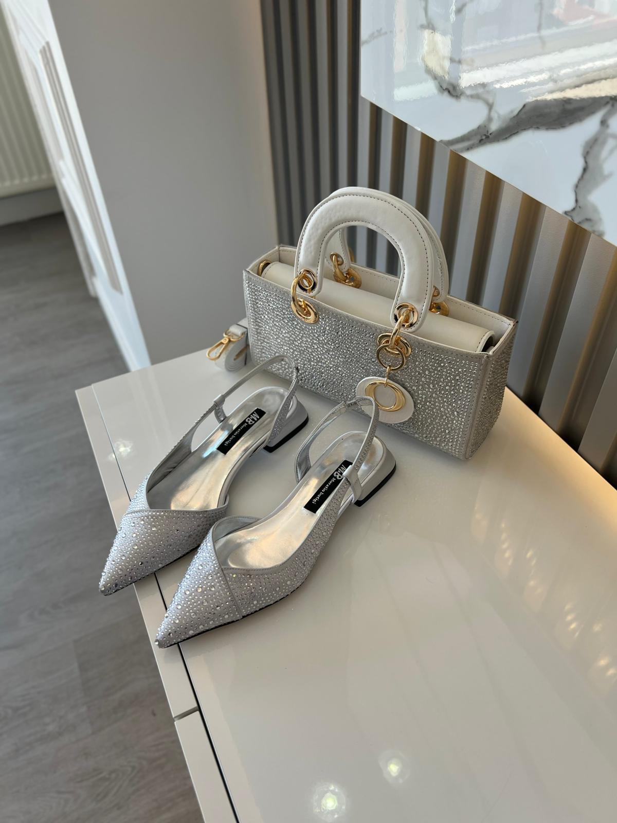 LİMAR TAŞ DETAYLI GÜMÜŞ RENK KADIN BABET VE KOMBIN ÇANTA (0335)