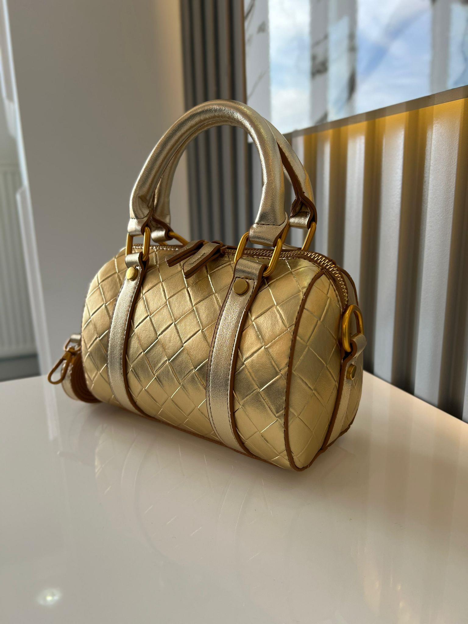 MAT KARE DESENLI GOLD RENK KADIN ÇANTA Yükseklik 13 cm genişlik 20 cm