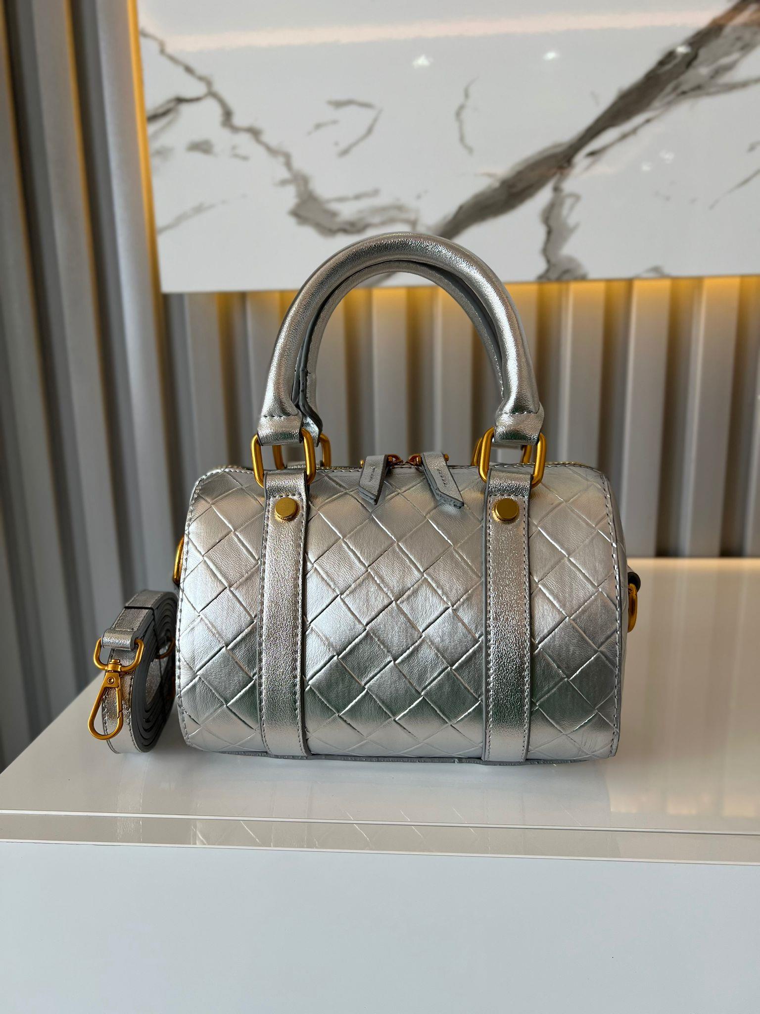 MAT KARE DESENLI GÜMÜŞ RENK KADIN ÇANTA Yükseklik 13 cm genişlik 20 cm