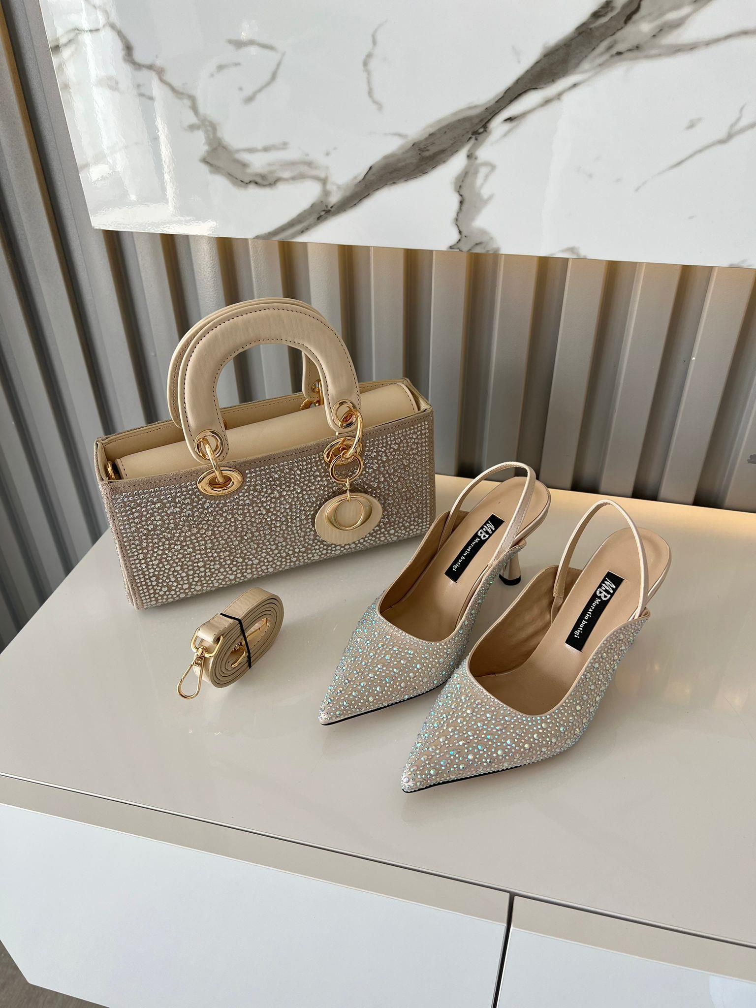 MEYLA BEJ SATEN TAŞ DETAY KADIN AYAKKABI ÇANTA KOMBIN (8585)