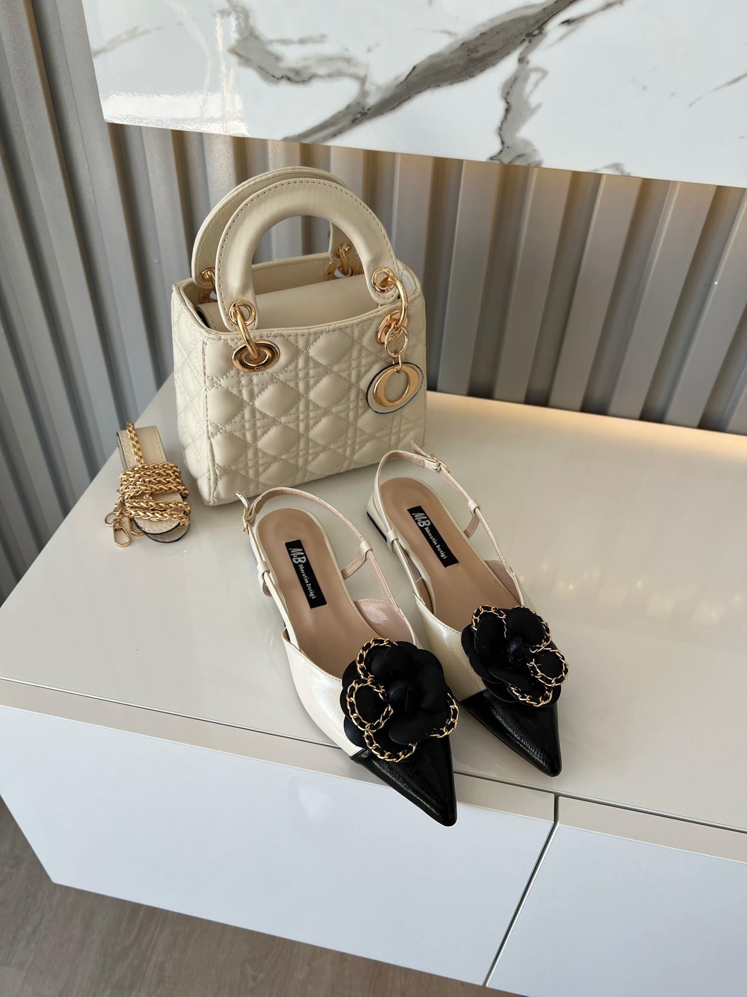 NEVA ZİNCİR DETAY BEJ SİYAH BABET ÇANTA KADIN KOMBİN (0915)