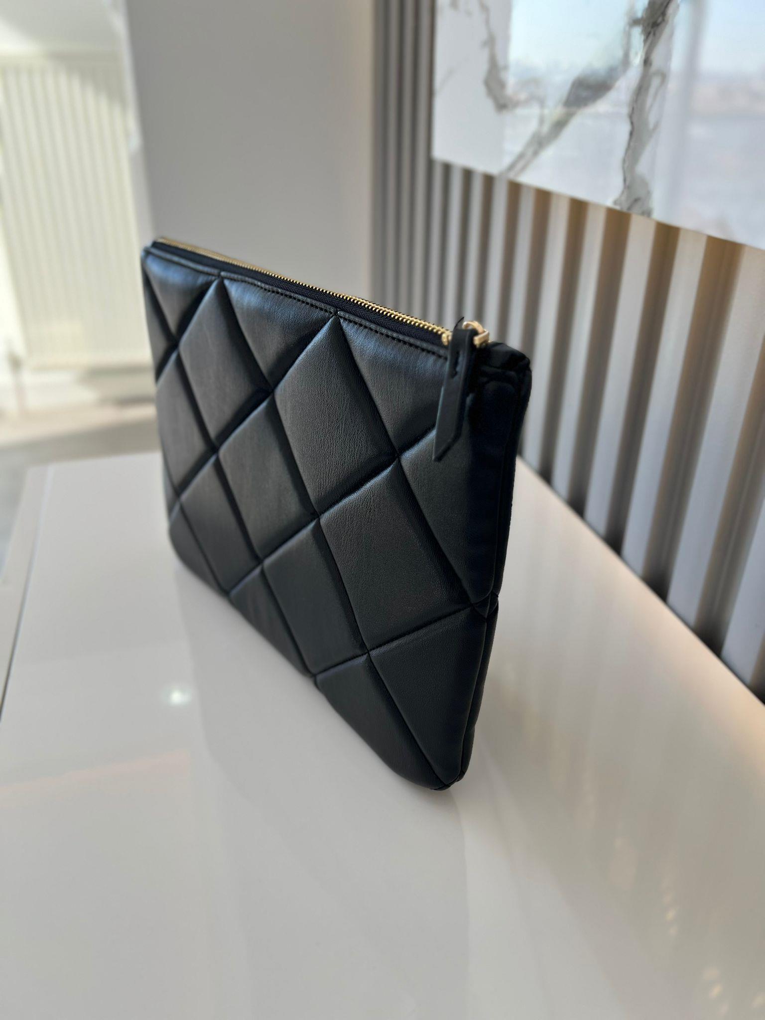 Siyah Kapitone Şık Clutch  Zarif ve Minimal Tasarım