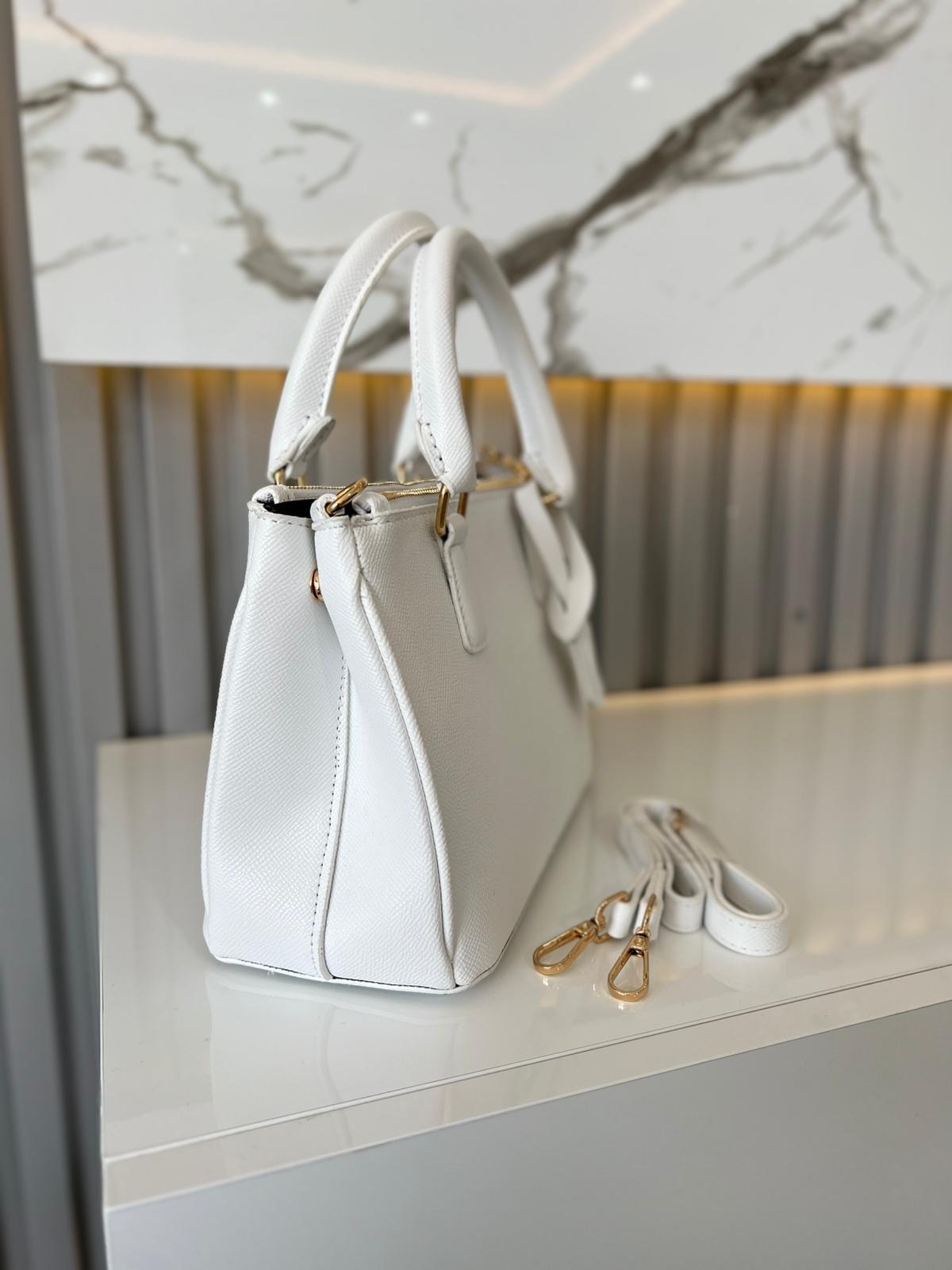 Zarif beyaz el & omuz çantası çıkarılabilir askısıyla hem elde hem de omuzda kullanım rahatlığı