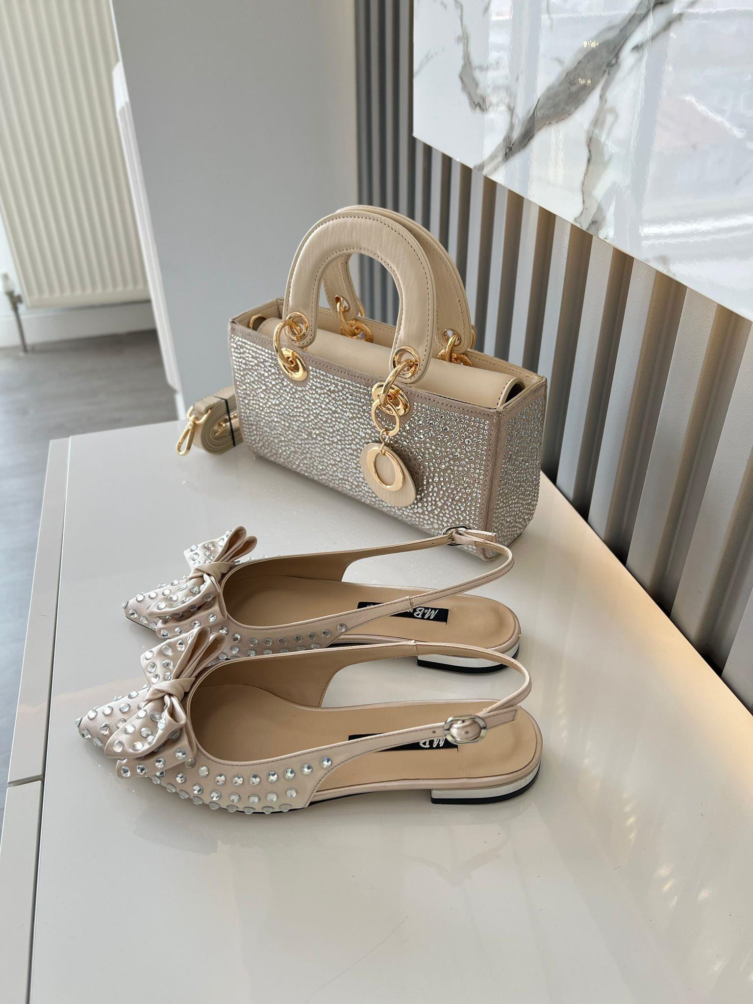 Zarif Fiyonk Detayı ve Taş Işıltısıyla Göz Kamaştıran BEJ RENK  Ayakkabı çanta kombin
