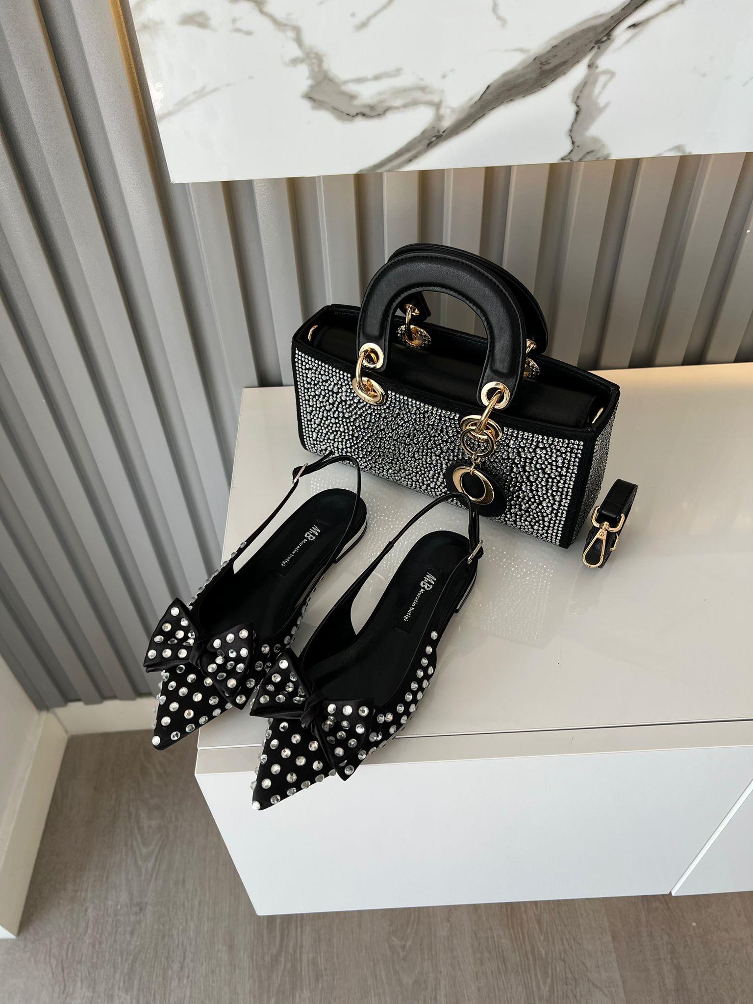 Zarif Fiyonk Detayı ve Taş Işıltısıyla Göz Kamaştıran SİYAH RENK  Ayakkabı çanta kombin
