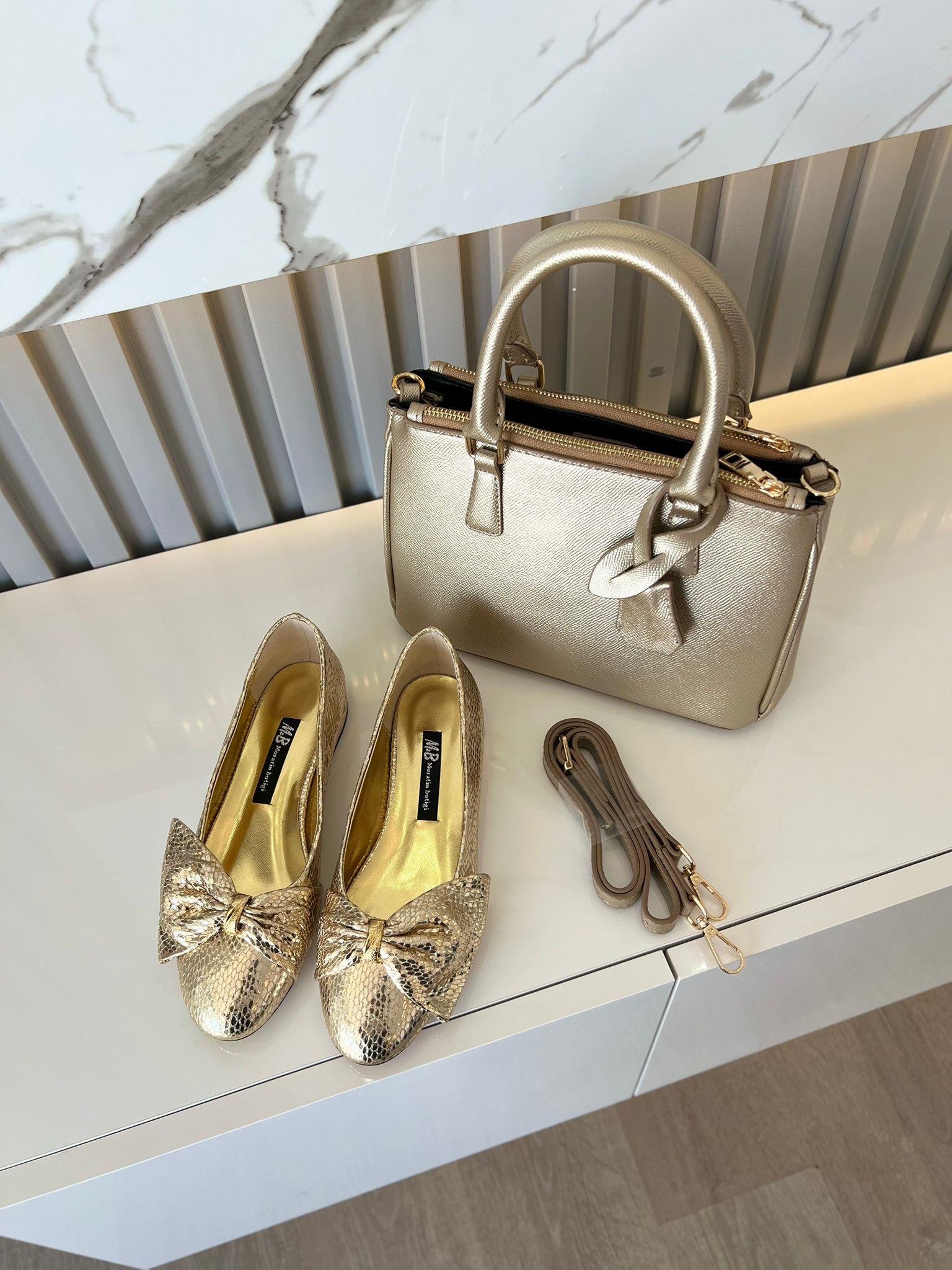 Zarif fiyonk detayli altın babet Her adimda siklik her numarada konfor (36-43) Kombin veya sadece ayakkabı tercih edebilirsiniz (0021)
